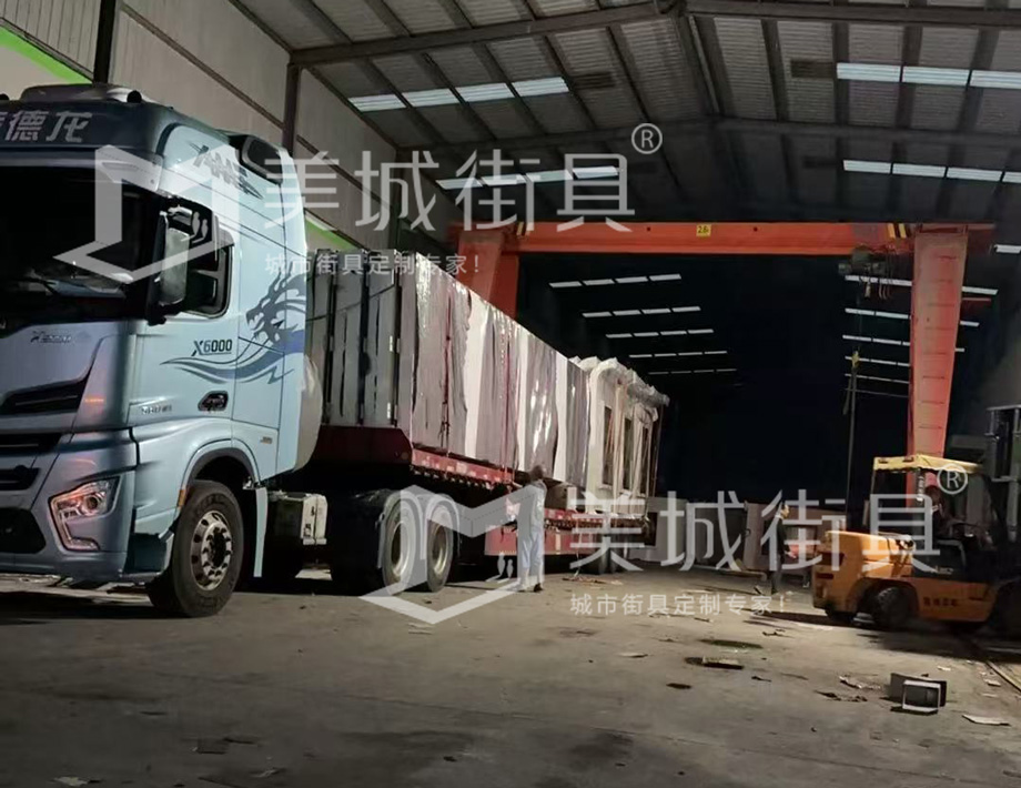 江蘇美城街具為新疆定制公交站臺第三批批發(fā)貨案例